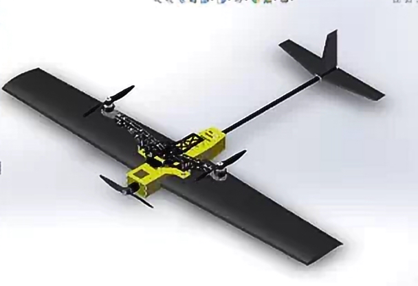 该阶段项目成员在飞行力学实验室王维军老师的指导下,开始对概念飞机进行样机制作。在王老师的指导下,成员们对整体设计方案进行了一定的修改,减少了机翼对垂直发动机旋翼下洗气流的遮挡,提出了一种翼形机翼与倾转旋翼相结合的设计形式。控制上依旧延续了直升机与固定翼过渡控制彼此分离进行的设计思路,因此前拉电机保留。