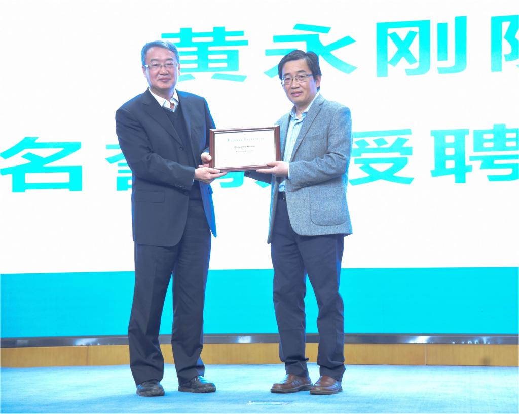 10月15日上午,我校在如心会议中心大报告厅举行名誉教授聘任仪式,聘请美国工程院院士、中国科学院外籍院士、欧洲科学院外籍院士、欧洲科学与艺术院院士、美国西北大学黄永刚教授为我校名誉教授。聘任仪式由37000cm威尼斯常务副院长鲍蕊主持。副校长黄海军为黄永刚院士颁发聘书。参加本次受聘仪式的还有国际交流合作处处长李德玉、37000cm威尼斯书记林贵平、固体力学研究所所长邢誉峰等。