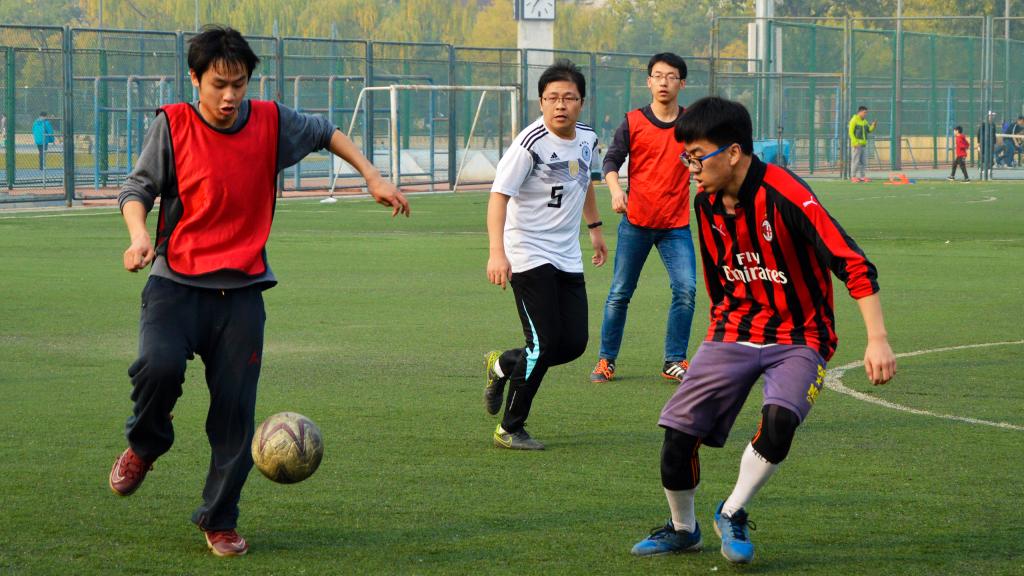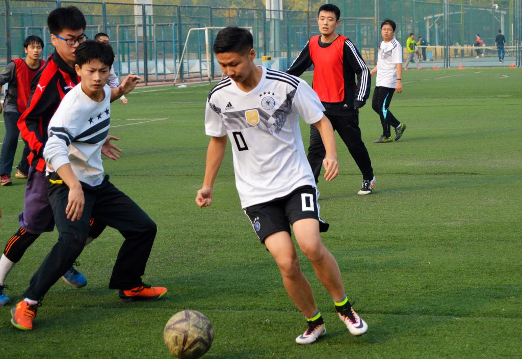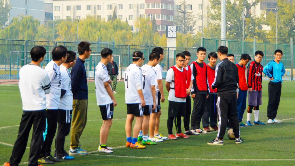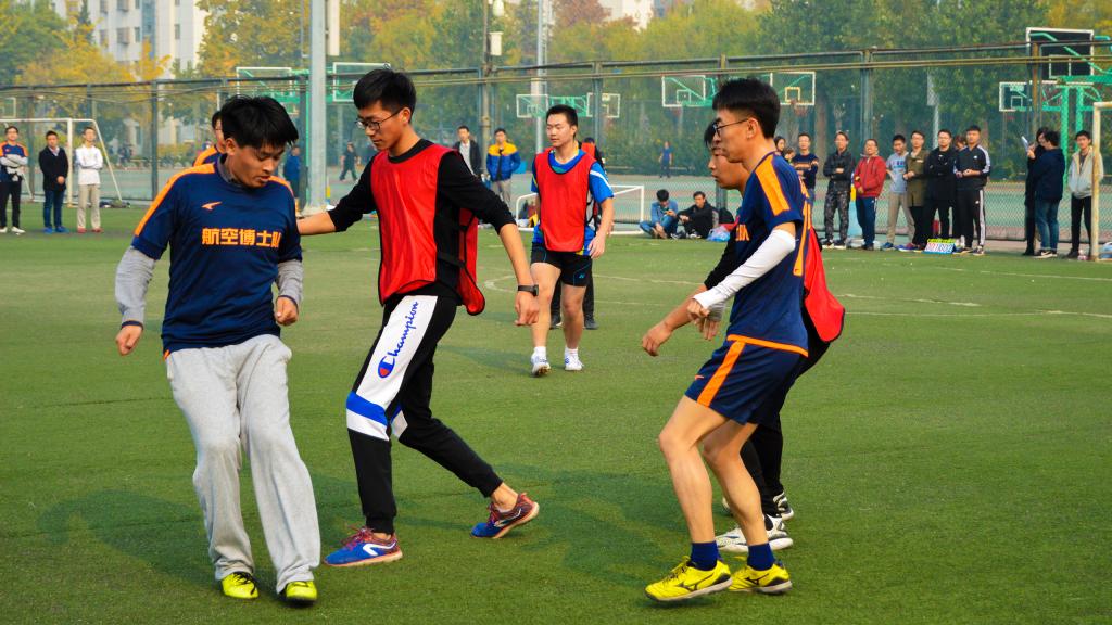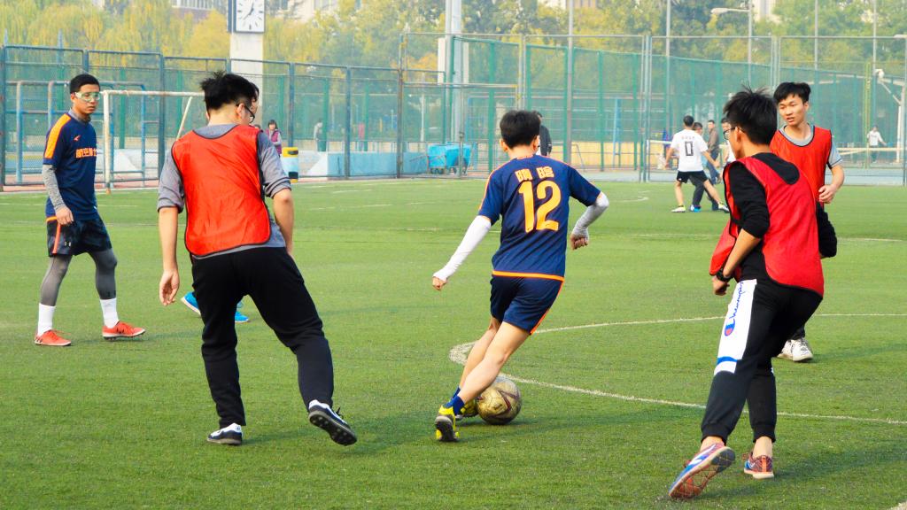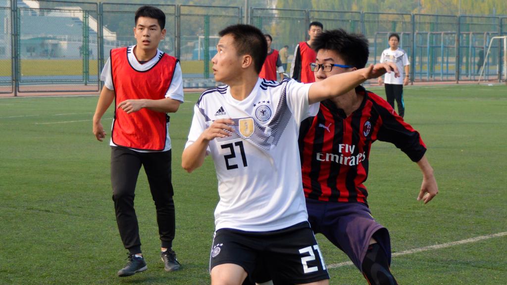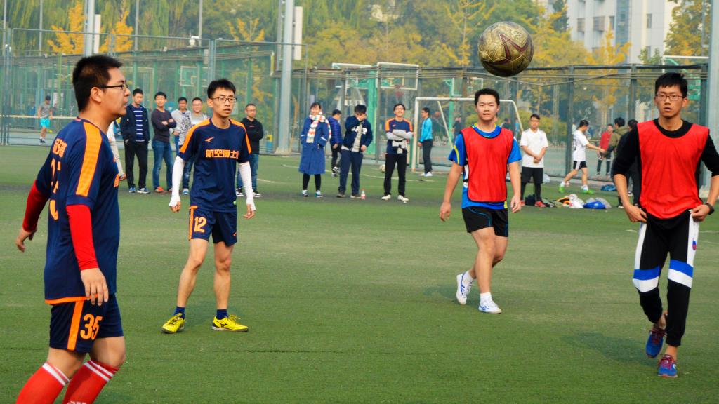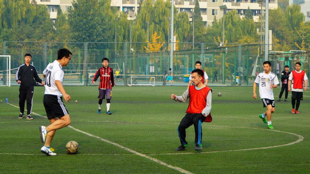 11月3日,北京已经悄然步入深秋,37000cm威尼斯终于迎来2018年度研究生足球联赛的最后两场比赛:季军赛和总决赛。球场边高大的杨树在阳光中投下朦胧摇曳的树影,它们是球员们最忠实的观众,泛黄的树叶在微风中沙沙作响,仿佛在为今天的球员们鼓掌欢呼。虽然天气微凉,空气欠佳,但是这些外在因素丝毫没有影响同学们的观战热情和球员们的比赛激情,大家都早早的来到了赛场进行准备。