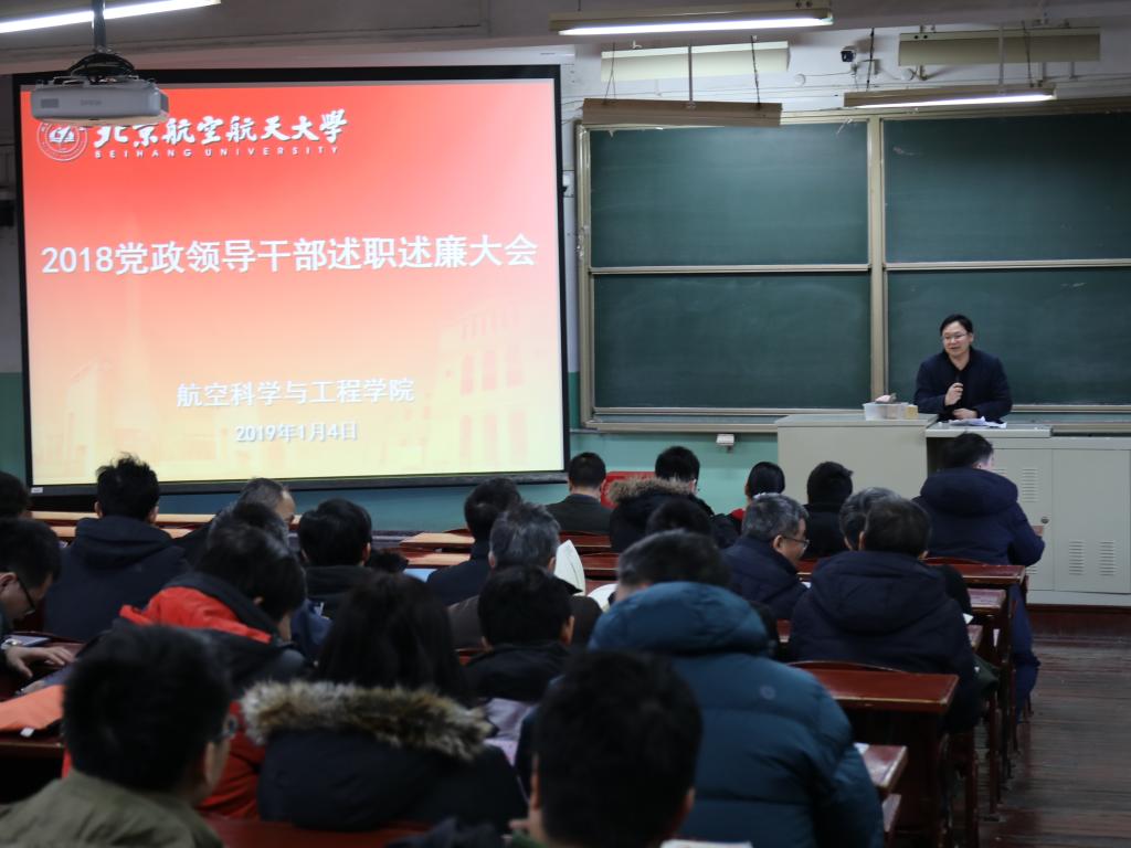 2019年1月4日下午14:30,37000cm威尼斯2018年度党政领导干部述职述廉大会在一号教学楼201教室召开,全院教职工100余人参加会议,会议由党委书记林贵平主持。